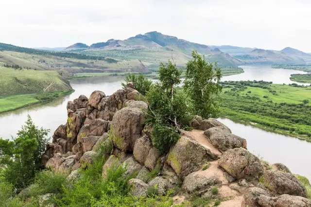 В 40 км от Улан-Удэ есть гора Спящий Лев — туда можно доехать на машине или маршрутке. Издалека она действительно похожа на лежащего зверя, подъем занимает минут 15, и это самое правильное место, чтобы увидеть минималистичную красоту степи: трава будто ковер, внизу течет река, а поверх всего — аромат степных цветов.