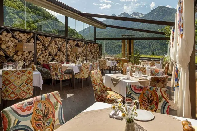 Потом обедаем в ресторане Геры Митрош «Яблоки печём» с панорамным видом на горные хребты Аибги и Ачишхо. Это ресторан современной деревенской кухни с пекарней авторских десертов и ремесленного хлеба (неизменно возвращаюсь оттуда с буханкой гречневого, лукового или ржаного с семечками). А недавно мы познакомились и с Кати Микавтадзе — владелицей греческой таверны «Илиос». Если хочется безудержного веселья — с концертами, шумными вечеринками с сиртаки и традиционным битьем посуды, — вам сюда.