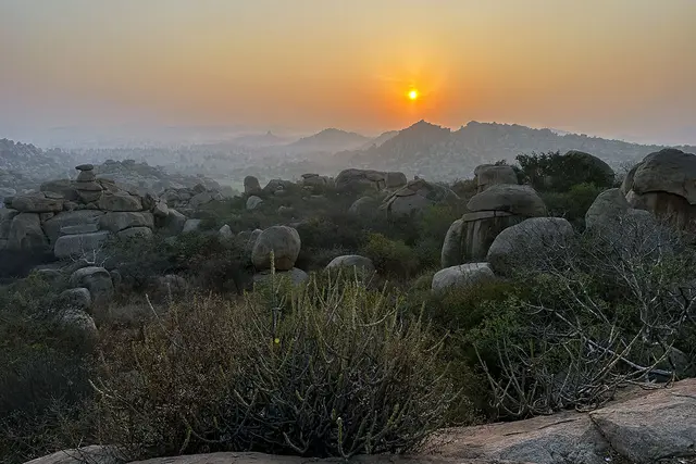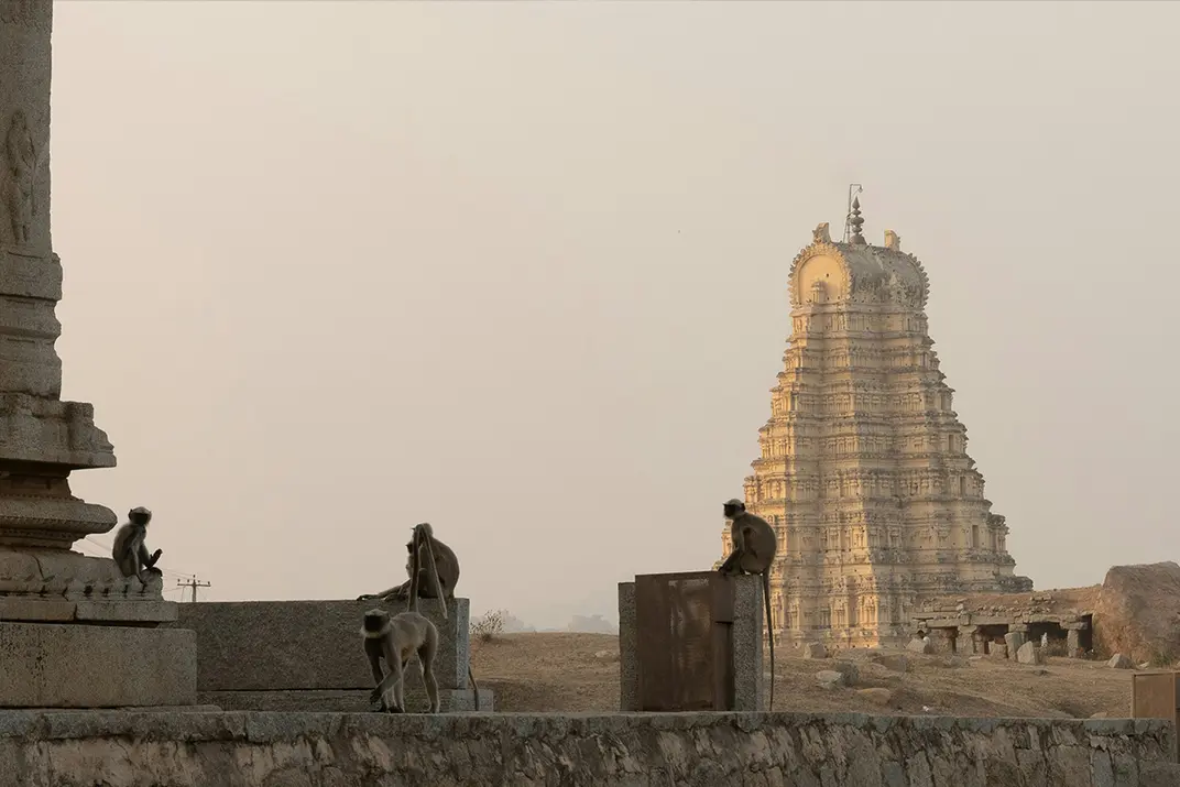 Взобравшись на вершину холма, вы увидите вокруг усыпанную валунами местность. А с другой стороны — храм Вирупакша и дорожки, по которым иногда будут бродить монахи в ярких одеждах.