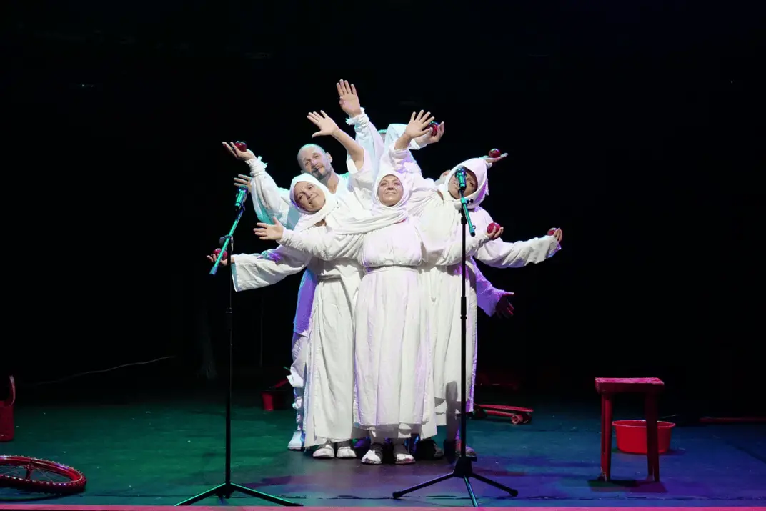 Спектакли MOÑ — это всегда работа с пространством и ощущением. В театре нет рампы, сцена часто буквально растворяется в зале, а зритель становится участником действия. Проект открыто говорит о таких сложных темах, как идентичность, травма, диалог поколений. Однако всё это подается не в лоб, а через образы, пластику, ритм и тишину.