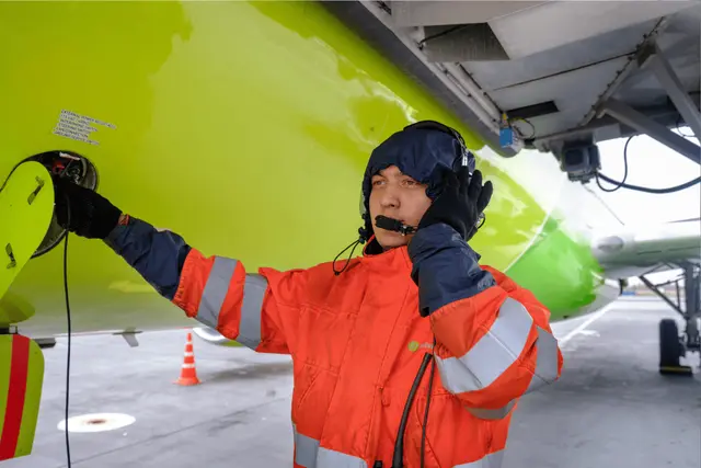 Нам удалось посмотреть, что происходит с самолетом Embraer 170 между рейсами. Это самый маленький лайнер в авиапарке S7 Airlines, он перевозит 78 пассажиров, и на его обслуживание заложено 40 минут. На подготовку к полету более крупных воздушных судов — Airbus 320 и Boeing 737 — предусмотрено 55 минут.