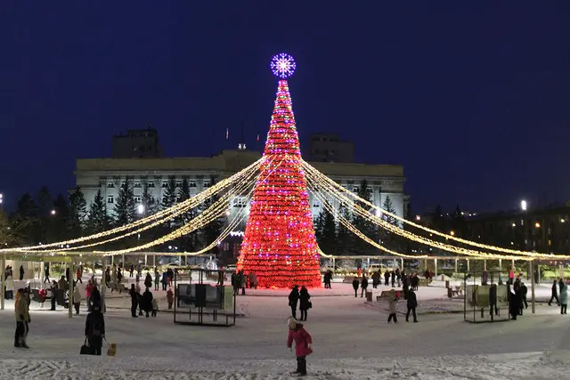 Городская елка Тюмени регулярно попадает в списки самых высоких новогодних елок России. Главную зеленую красавицу устанавливают на площади