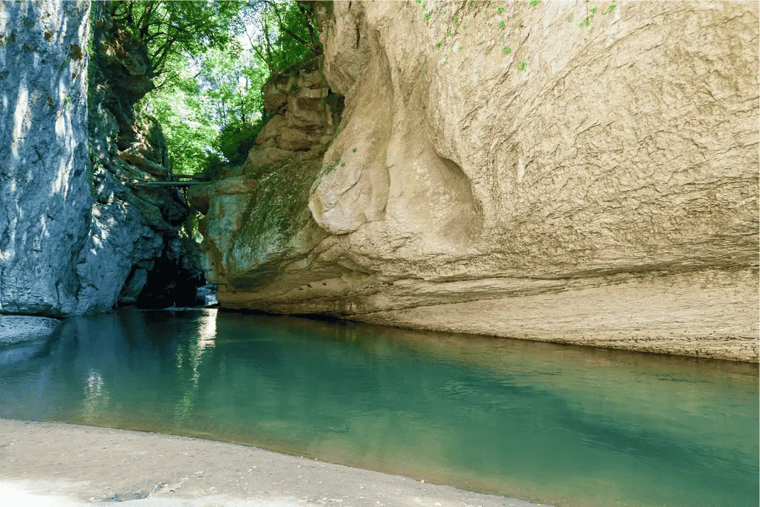 В октябре в Адыгее еще тепло, леса окрашены золотым, а горные реки в это время не полноводны, местами русло можно перейти вброд. Если погода ясная, вода кажется изумрудной.