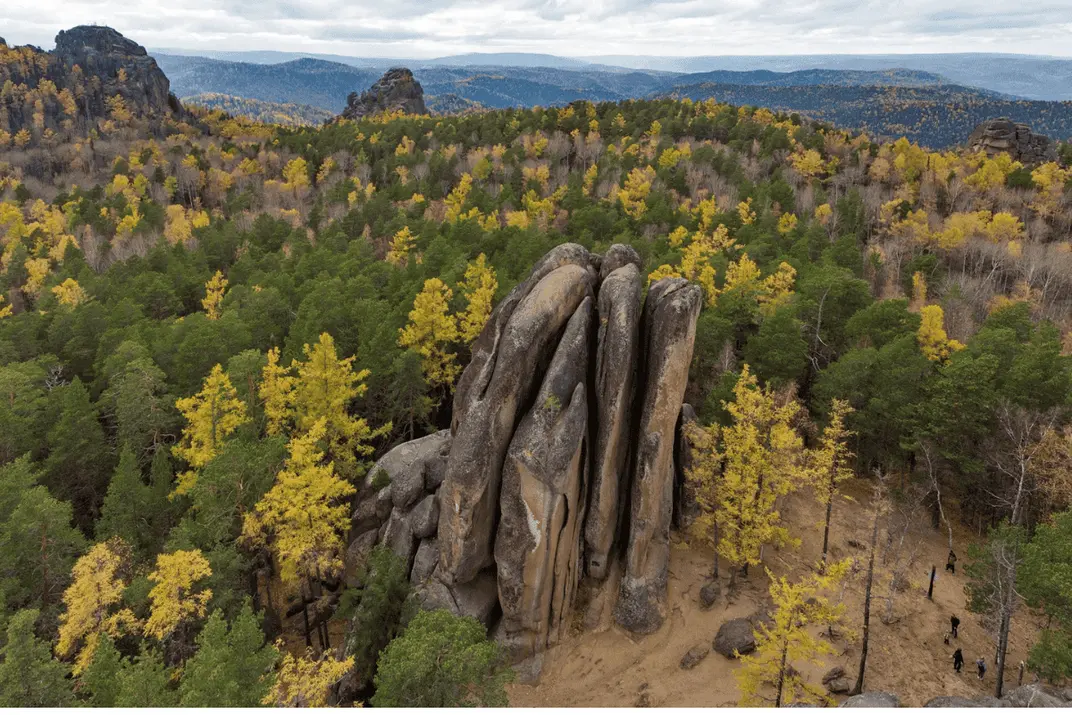 Столбами именуют необычные скальные образования, которые продолжают меняться. Это популярное место тренировок альпинистов, а если вы не любитель острых ощущений, каменными вершинами можно просто любоваться — в осеннем обрамлении они имеют поистине дивный вид.
