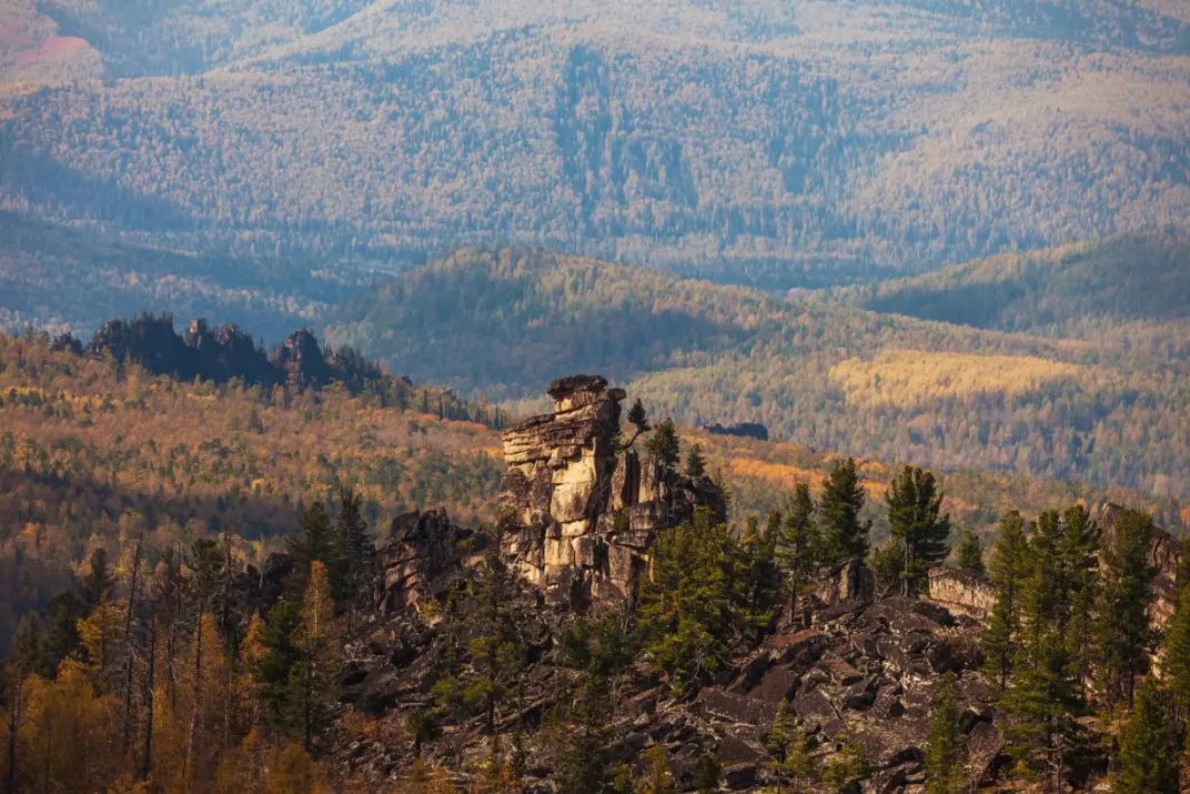 Кутурчинское Белогорье — один из хребтов Восточного Саяна, протянувшийся на 80 км между реками Маной и Миной. Эти горы, заросшие темнохвойной тайгой, славятся множеством причудливых каменных выходов, осыпей и останцов, напоминающих следы исчезнувшей цивилизации.