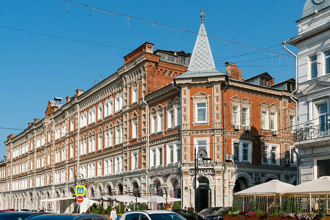 На площади Маркина стоит необычное, стилизованное под древнерусскую архитектуру, здание Блиновского пассажа. Его построили в 1870-х годах купцы Блиновы (отсюда и название) как торговый центр: в нем были 40 лавок, ресторан, чайная и десятки мелких контор. Именно в Блиновском пассаже Максим Горький устроил банкет по случаю своего отъезда в ссылку.