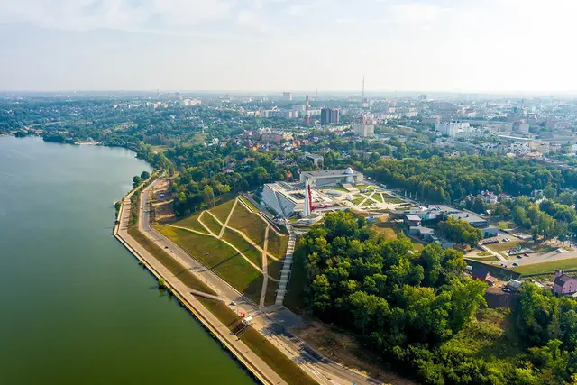 Парк у Музея космонавтики и ракета-носитель «Восток» — подлинный ракетно-космический комплекс, сконструированный для запуска космических кораблей. «Восток» использовался по назначению
