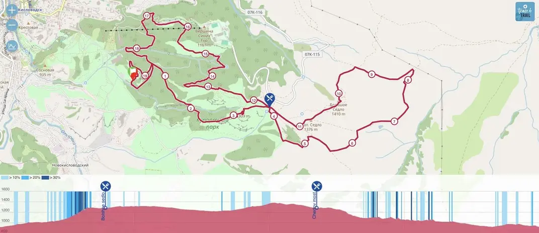 После «Большого седла» был спуск вниз, и я побежал ко второму (последнему) пункту питания. И вот тут укол организаторам. На карте было указано, что второй ПП будет в районе 10 км, до Большого Седла. Но его там не было. И я все гадал — или часы сбоят, или перенесли, или ещё что-то.