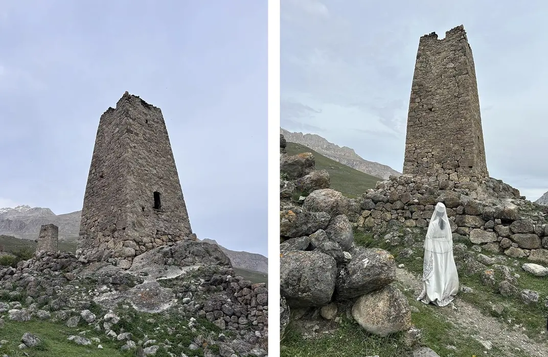 А следующее место — старинный город (селение Цмити), где были родовые башни. Большая часть разрушена, но некоторые семьи их восстанавливают. Есть традиция приезжать большой семьей на родовое место раз в несколько лет.