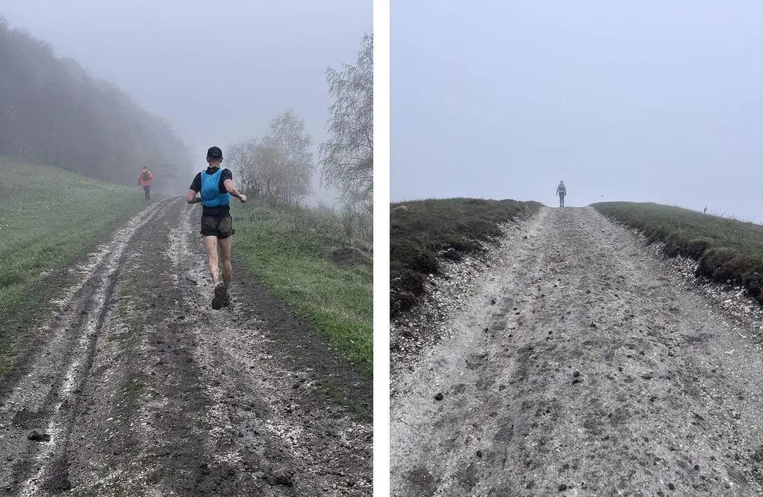 Трасса должна была быть красивой, но не в этот раз. Было много молока тумана, в котором нельзя было увидеть что-то на расстоянии каких-то 5-15 метров. Настоящий Silent Hill… Бежишь куда-то вперед и все, что ты видишь, — это размытая грязь дороги и иногда где-то появляются силуэты бегущих «коллег».
