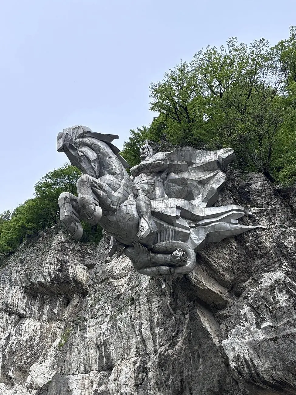 Первой остановкой нашей экскурсии стал памятник, посвященный Уастырджи (Святому Георгию) — герою осетинской мифологии и покровителю путников и воинов. На фото он выглядит огромным, но в реальности размеры впечатляют еще больше: