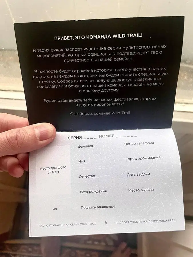 Еще в стартовый пакет случайным образом клали паспорт бегуна — в нем можно собирать печати с разных забегов WildTrail