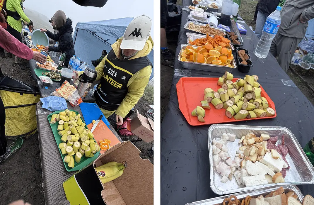 Второй пункт (где-то на 11/12 км) питания встретил с большой радостью. Сам ПП был в лучших традициях шведского стола в турецких отелях. Был такой ассортимент: