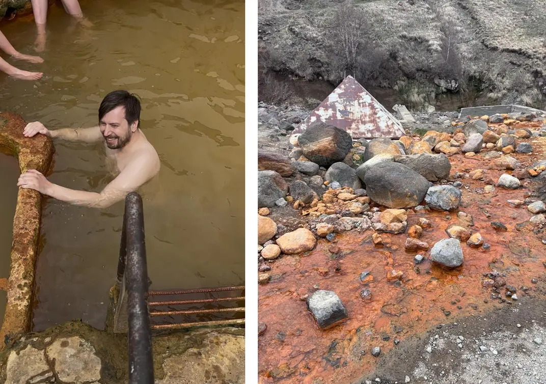 Самый сок тут в Нарзанной ванне. Это небольшой природный бассейн с минеральной водой. В него можно залезть и провести там немного времени. Ощущения интересные: вода прохладная и бурлит. Получили ли мы после этого +10 к здоровью, вопрос риторический. Из нюансов отмечу, что тут общая раздевалка и с собой нужно брать полотенца.