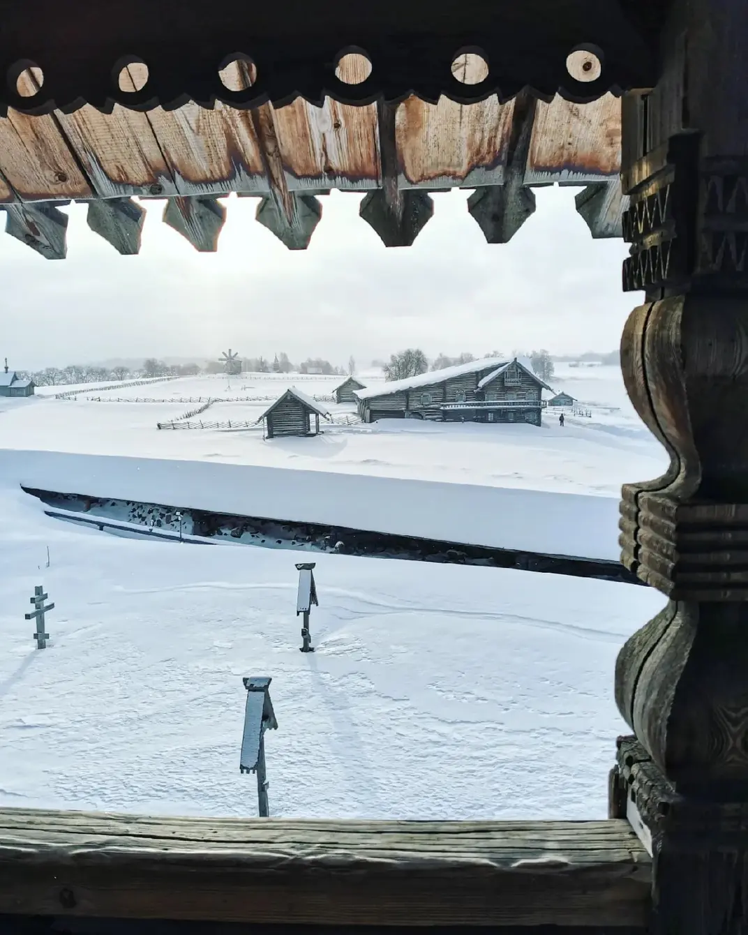 - Кижи — шедевр деревянного зодчества. Зимой эти церкви будто вырастают из снежного моря. Особенно впечатляюще они выглядят на закате, когда солнце окрашивает снег в нежные розовые и золотые тона.