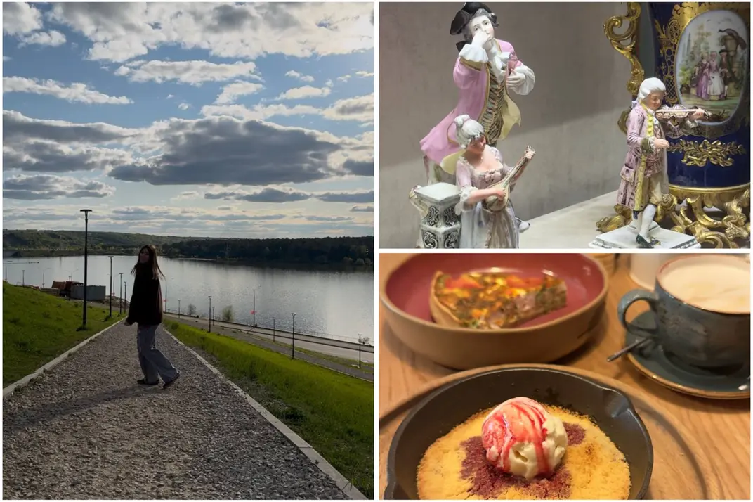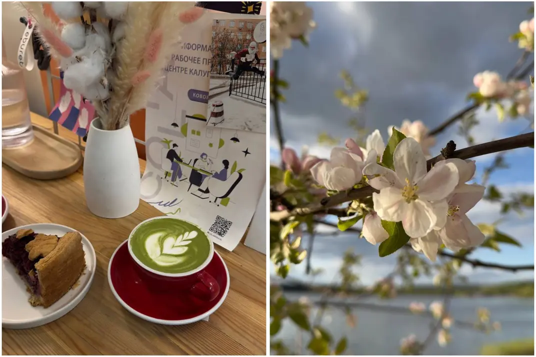 Слева — набережная Калуги, справа — экспозиция Краеведческого музея и обед в «Героях нашего времени»