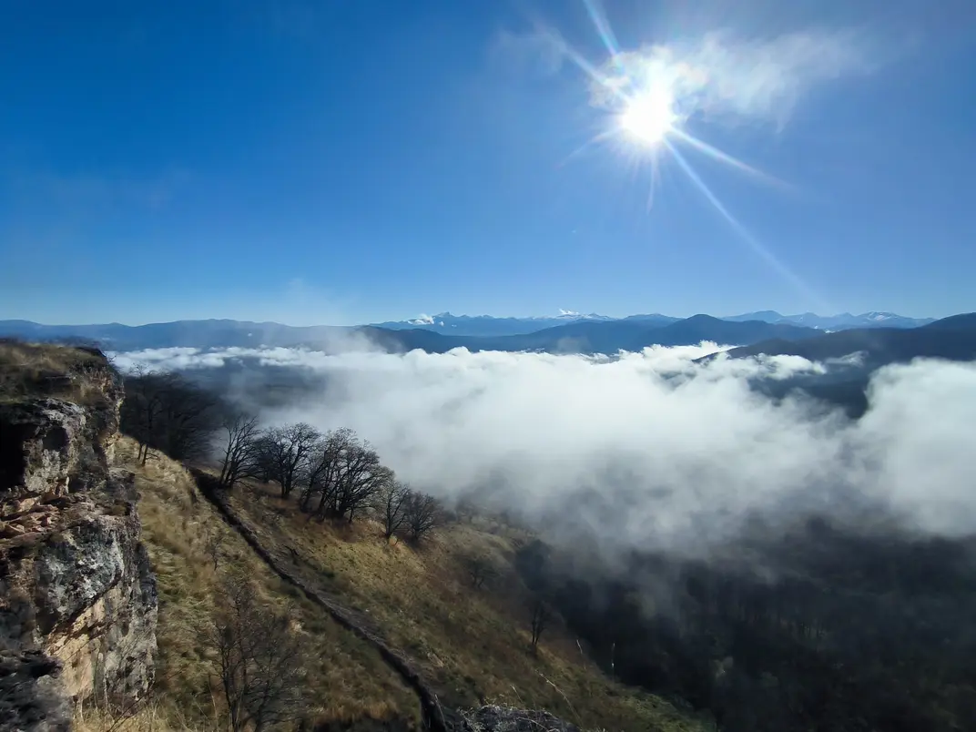 Когда на третий день Андрей повел нас на Трезубец, подъем на который был достаточно крутой, оказалось, что в его рюкзаке кроме тяжелого термоса и перекуса на троих лежит и томик Набокова, который он забыл выложить. Так бывает! Сами себе отягощаем жизнь. Но зато погода нас порадовала.