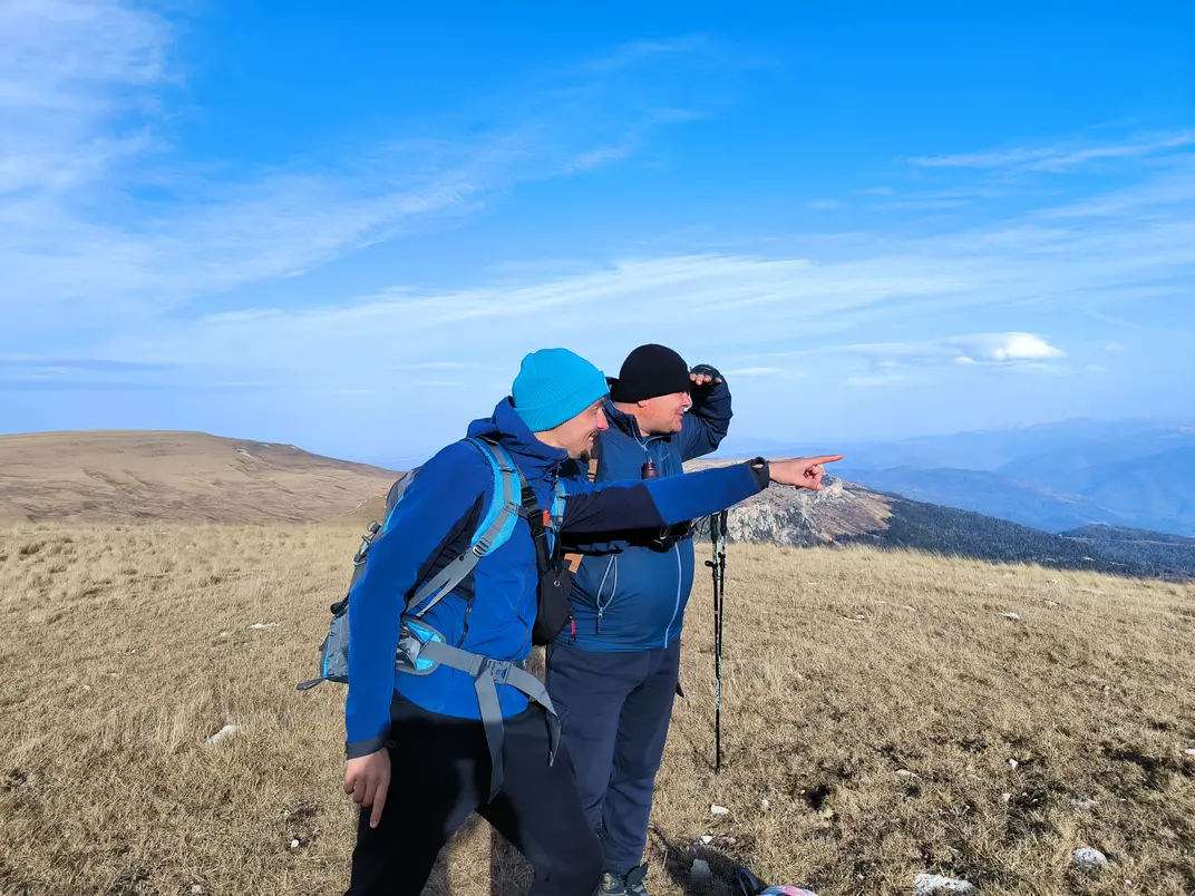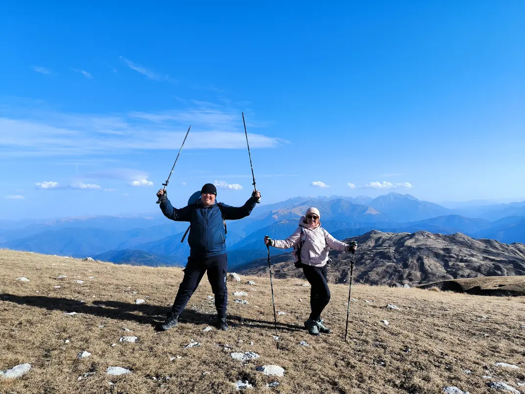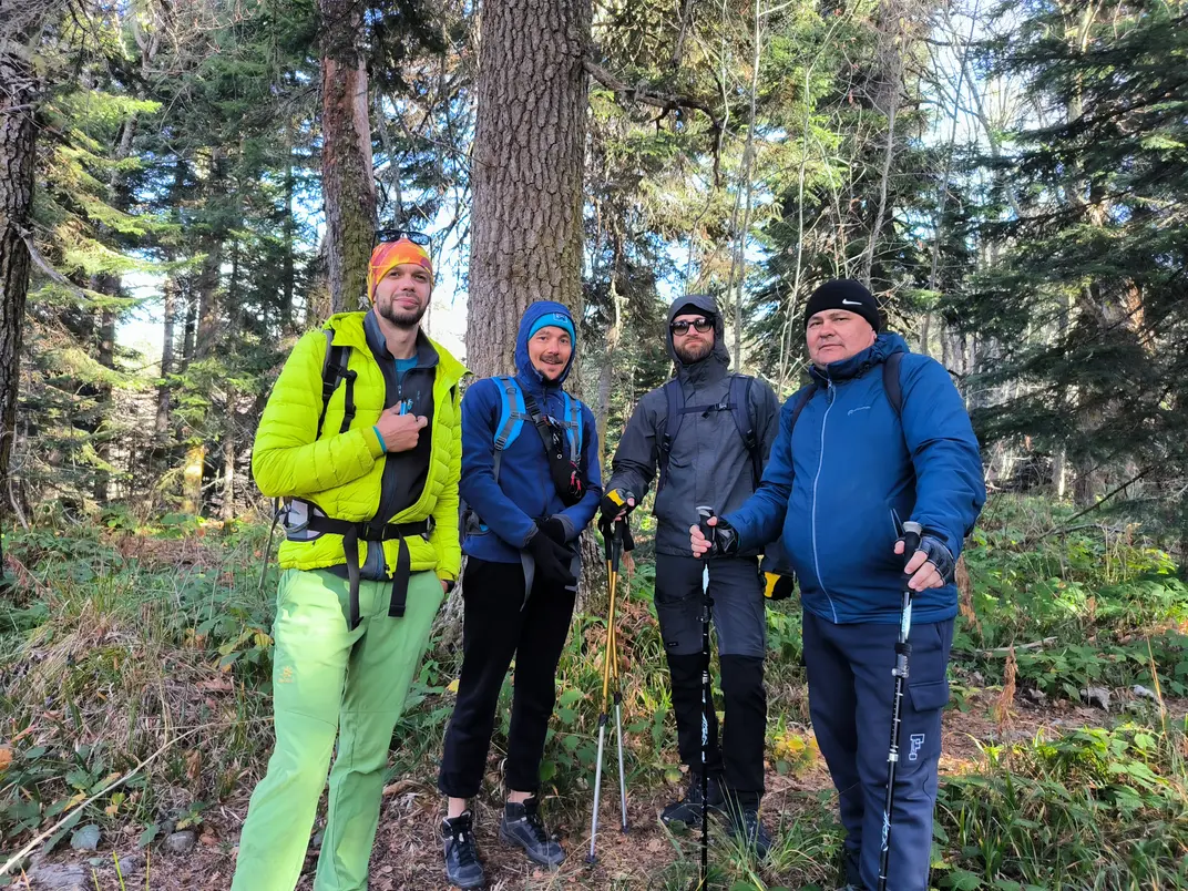 Утром 5 ноября мы так и сделали. День был теплый и солнечный. Наш маршрут проходил по территории Кавказского биосферного заповедника. По дороге на Блям (2400 м над уровнем моря) под ногами журчали ручьи, на обратном пути их уже не было. В роднике тоже не было воды. Но мы все-таки нашли проточную воду, благодаря нашему инструктору Роману. Он всю дорогу шутил и жалел, что не взял с собой гитару.