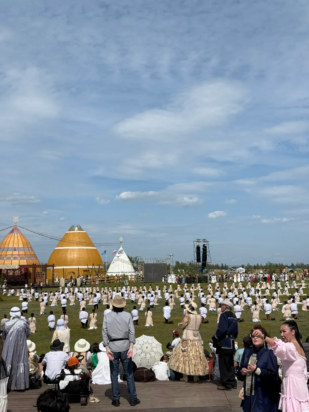 Помимо обряда молений, где мы получили благословение (алгыс), обильного угощения и кумысопития, праздник сопровождался танцами, народными играми, конными скачками. Мужчины соревновались в масс-рестлинге, армрестлинге, хапсагае, вольной борьбе, стрельбе из лука и перетаскивании валунов. От воспоминаний о масштабах представления до сих пор мурашки по коже. Наверное, никто не сможет это представить, пока не испытает на себе. Кульминацией, которая привела нас в восторг, стал хоровод — «осухай», в который по традиции собираются все жители в конце представления.